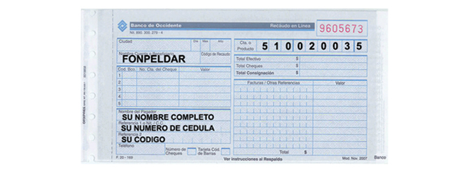 Crediflores: Debe consignar a la cuenta No. 004013998, a nombre de FONPELDAR.