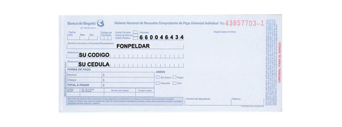 - Solo se reciben tarjetas con Códigos de Barras recaudo Fonpeldar.